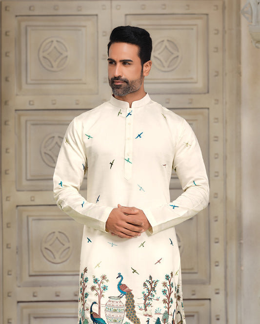 Glamour White Silk Kurta - Intricate Motifs Masterpiece