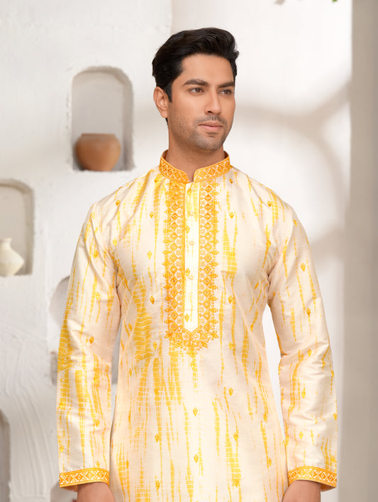 Sunshine Elegance Kurta Set in Yellow & Cream