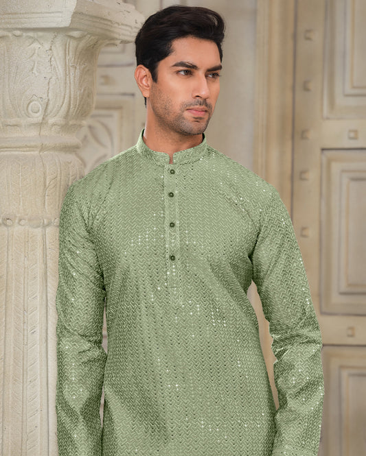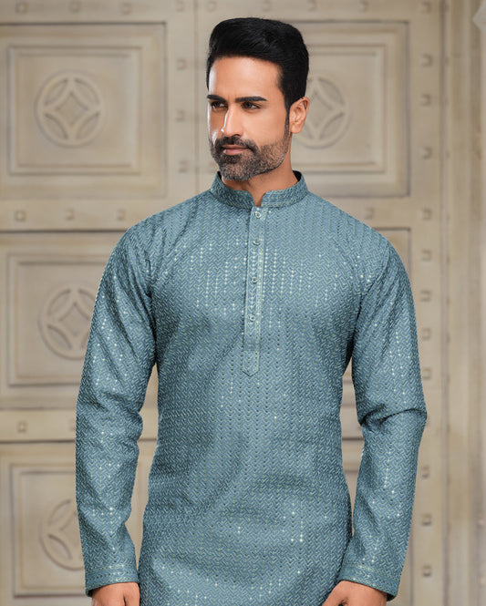 Mintage and Aqua Tint Silk Kurta with Embroidered Detailing