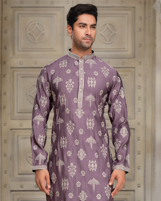 Twilight Mauve Silk Kurta - Embroidered Grace