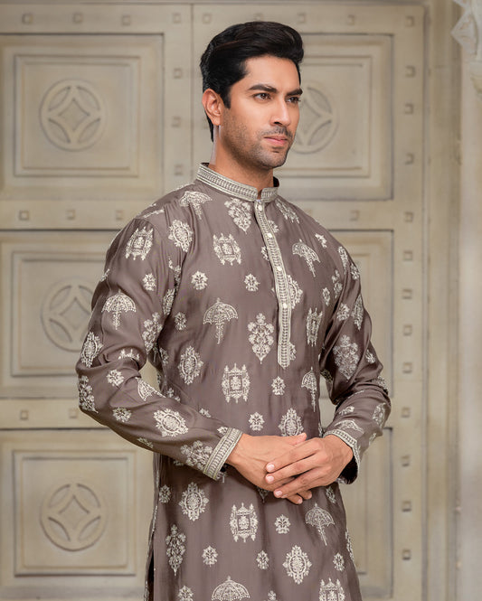 Centaur Brown Silk Kurta - Embroidered Elegance