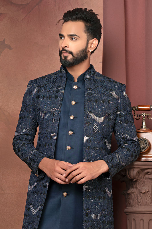 Pearl Oyster Embroidered Indo-Western Sherwani Set
