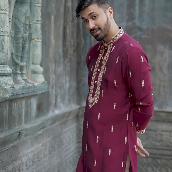 Maroon Silk Kurta with Exquisite Embroidered Detailing